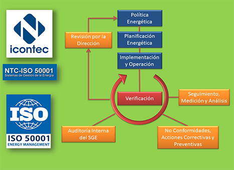 Asesoramos en la implementación del Sistema de Gestión de Eficiencia Energética con base en el estándar ISO 50001, orientamos las políticas de eficiencia energética y desarrollamos de la mano de nuestros clientes cada una de las fases que conforman el sistema de gestión, desarrollamos los procedimientos que garanticen la sostenibilidad del proceso así como los registros necesarios para asegurar la información y posterior análisis.